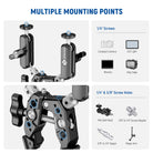 - Two Magic Arms with Dual Ball Heads- Double magic arms of this camera clamp mount allow you to mount two devices at the same time. The adjustable ball head structure enables 360° rotation for free device positioning, and 1/4" mounting screws suit various devices. Use locking knobs to adjust and secure magic arms with ease