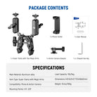 - Phone Holder & Action Camera Adapter Included- The 2.1"-3.3"/54-85mm adjustable phone holder is compatible with iPhone 15 Pro Max 14 13 Samsung Galaxy S24 S23. The action camera adapter is compatible with GoPro Hero 12 11 10 9 8 7 Black go pro max compatible with insta360 x4 x3 insta 360 ace pro compatible with DJI Osmo Action 4 3, etc. Several 1/4" and 3/8" threads and locating holes for ARRI are also for field monitors, LED video lights, microphones, etc.