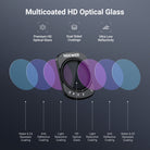 - Multicoated HD Optical Glass- Delivers sharp images while resisting water, scratches, smudges, and fingerprints during daily use