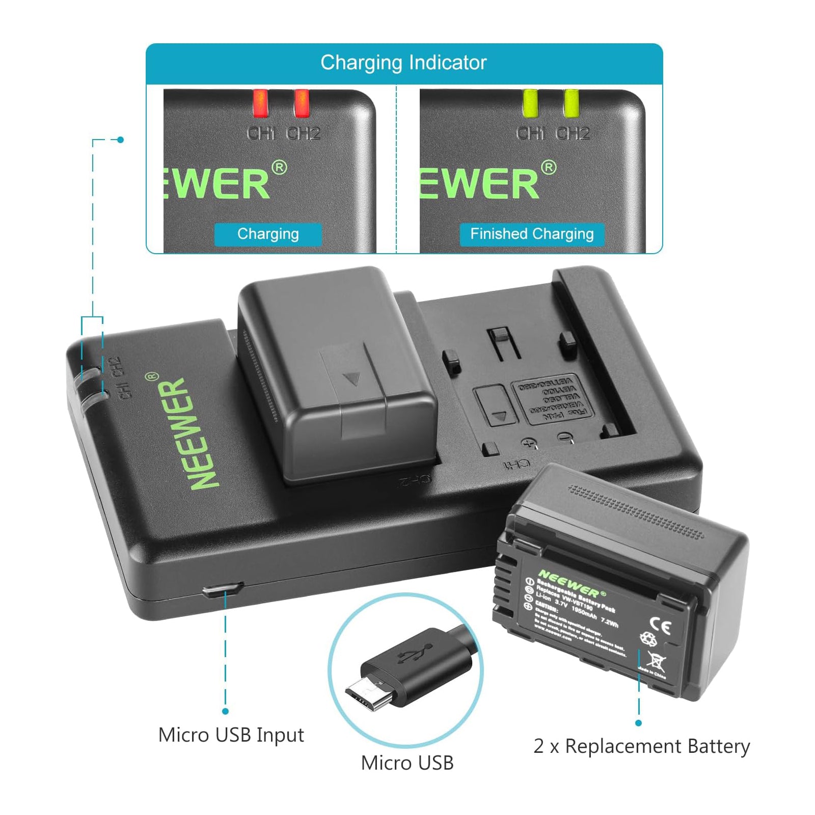 NEEWER VW-VBT190 2-Pack Panasonic Battery Charger Set